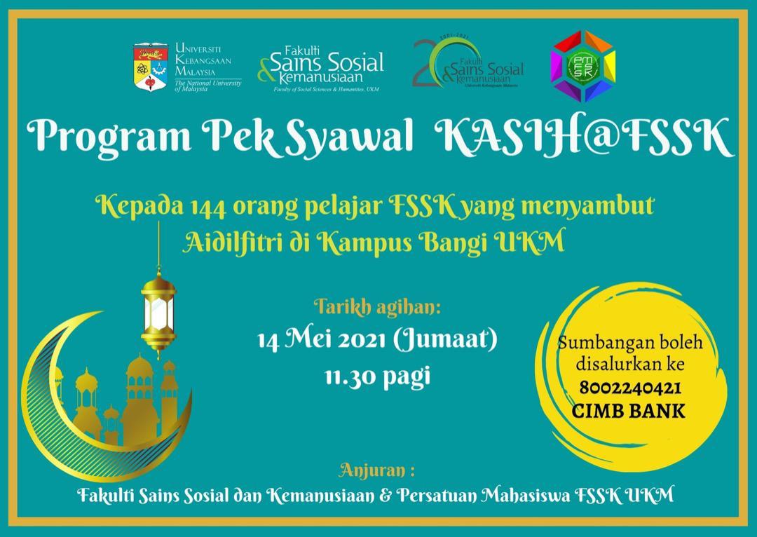 Hasil daripada inisiatif ini, maka Tabung KASIH@FSSK ditubuhkan bagi memberi peluang kepada seluruh Warga dan Alumni FSSK UKM untuk memberi sumbangan kepada Fakulti dalam menjayakan aktiviti-aktiviti kebajikan, pembangunan kesukarelawanan dan khidmat komuniti pelajar FSSK.